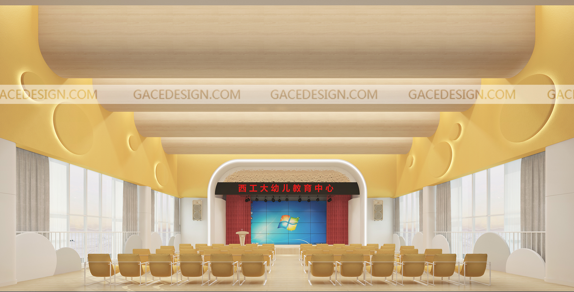 西北工業大學幼兒園始建于1957年,位于西安市南郊西北工業大學校園內,現為陜西省進行規范形象設計的示范幼兒園。此次我們負責設計的西工大幼兒園長安校區,幼兒園占地8860㎡,其中戶外面積7325㎡,幼兒園建面4300㎡。建筑四周擁有自然日光引入室內,并且窗戶的比例比較大。自然風和陽光系數都是極高的。戶外與室內條件優越。適合打造一所自然、生態、環保、書香的幼兒園。讓每個孩子擁有陽光和希望的人生開端。