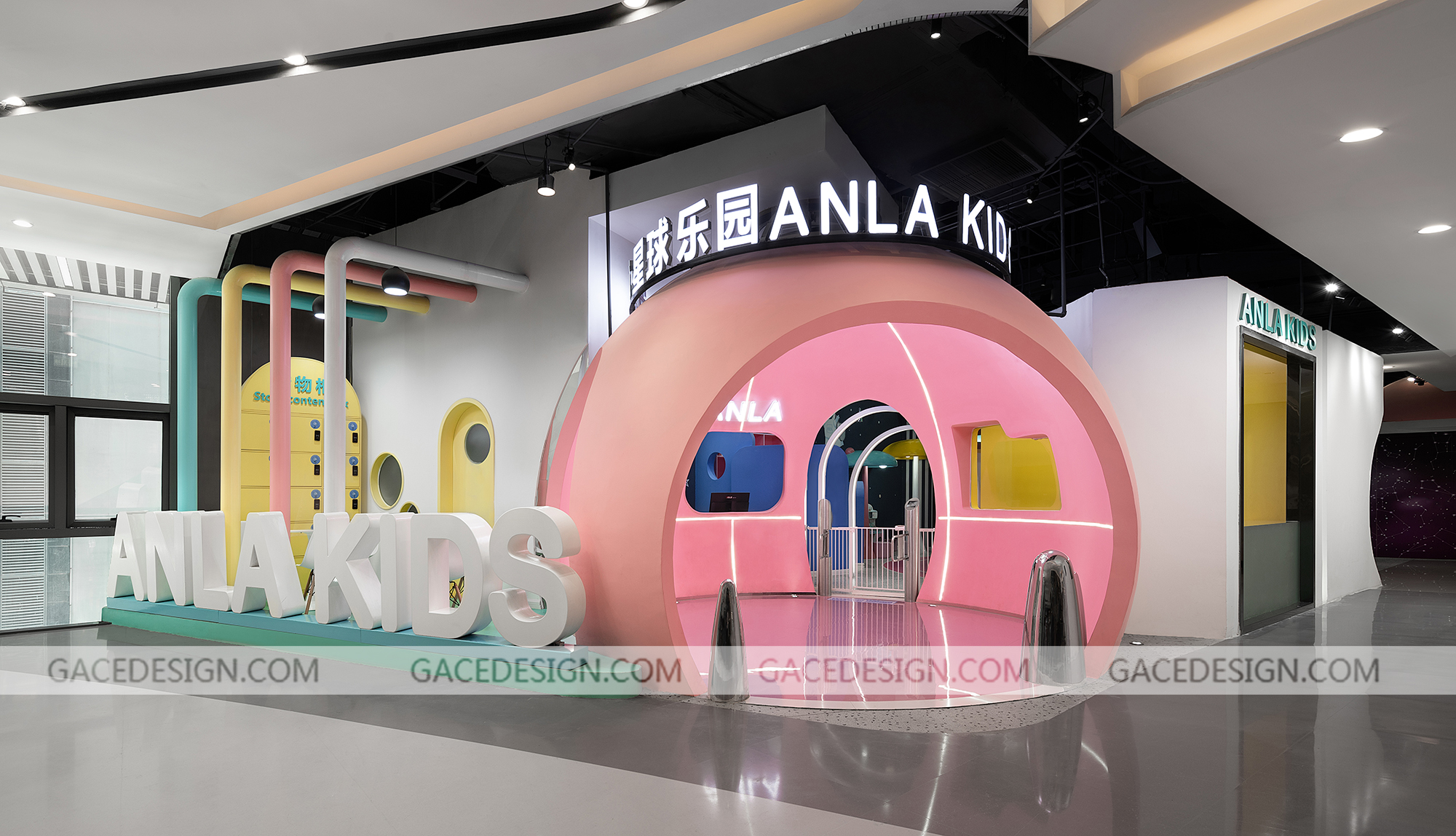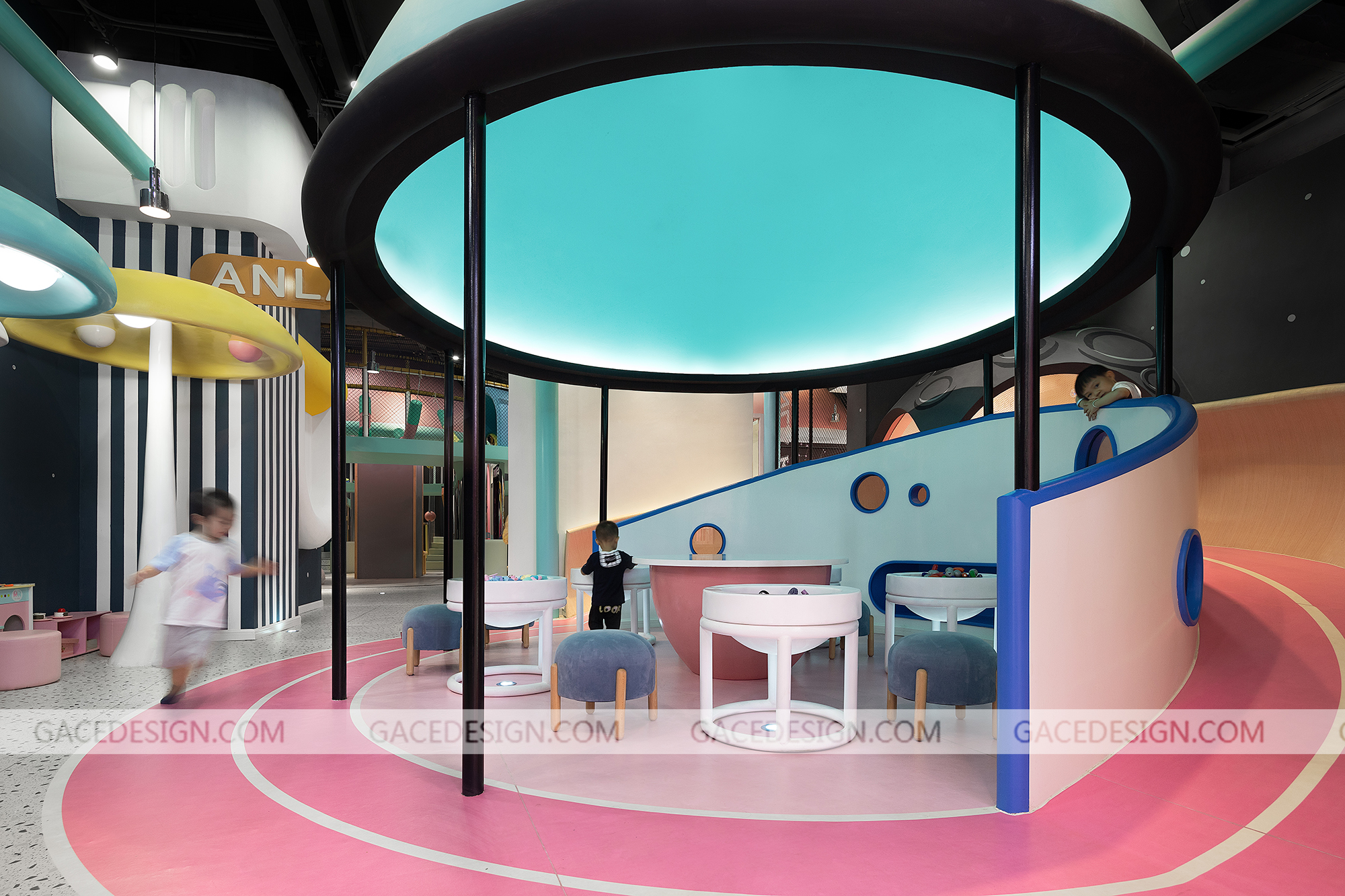 設計師將游樂場主題定為“未來星球”,以“未來”作為設計方向,以“星球”做為設計的核心。各種體量的“星球”在太空中穿行,打造出豐富多彩的星球世界。設計師根據孩子的冒險精神設定多種游戲玩法和路線,孩子進入游樂場后,首先需要了解故事背景,在置身其中不斷迎接挑戰,最終完成“拯救家園”的任務。整個游樂場分為前端接待區、中端靜態游戲區、后端動態游戲區。