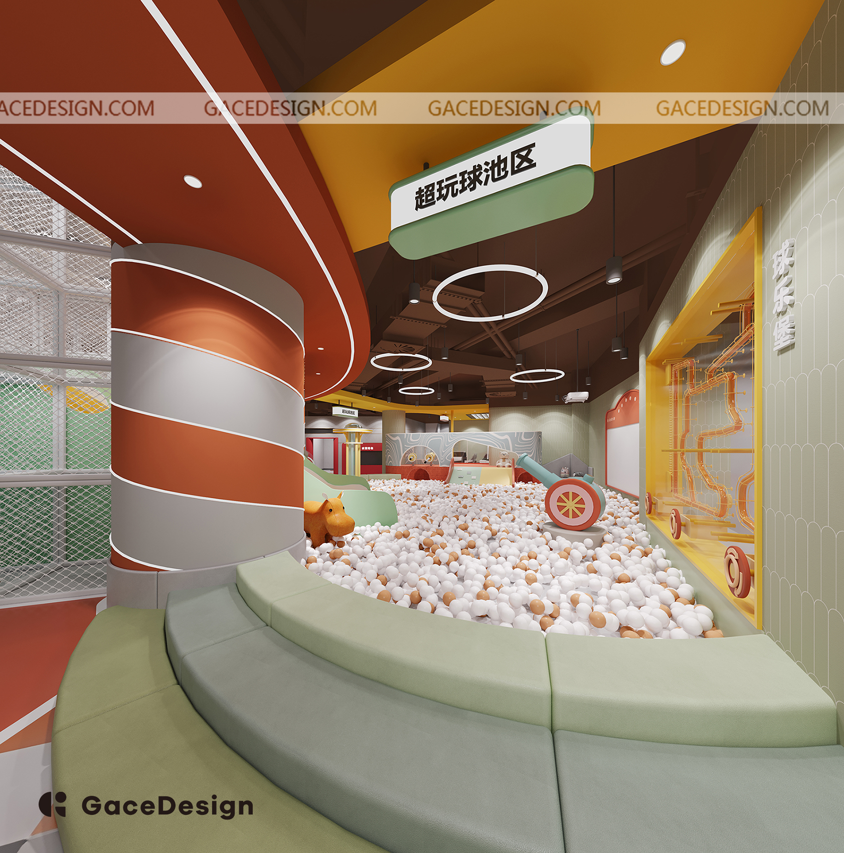 設計闡述:設計中的設施通過精心的設計可以靈活的滿足二至八歲孩子的學習及探索,空間的設計可以滿足各個學習階段的兒童安全的在空間進行探索。旨在讓兒童在無懼無所的空間里玩樂,并將“玩樂”的純粹歸還給兒童。讓兒童在空間中更好的享受滑梯、攀爬、躲藏、并在互動和游戲中成長。同時,陪同的家長也可以在這里放松心情,享受陪伴孩子的美好時光。