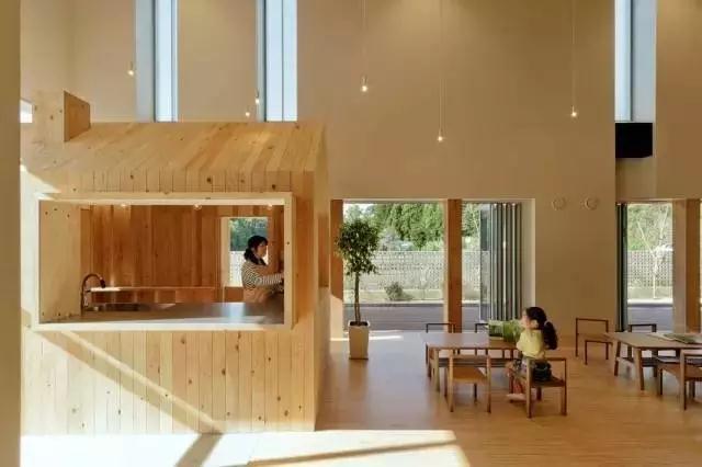 內(nèi)部設(shè)施簡單,大部分空間都可以進(jìn)行功能轉(zhuǎn)換,有大量空曠的空間,可以供小朋友自由活動(dòng)。幼兒園的名稱和班級的標(biāo)牌,采用花園里種植的日本櫸樹制作的,既親近自然,也是對孩子們的生態(tài)教育。