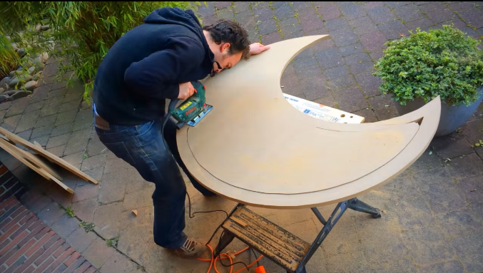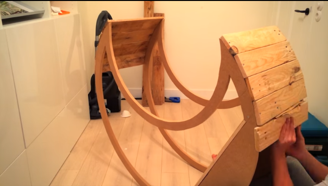 于是這位父親在他休假的時(shí)候準(zhǔn)備好了木板等材料,規(guī)劃出形狀之后就用工具開始切割,就是先裁出一個(gè)月亮形的半圓,但是為了結(jié)構(gòu)穩(wěn)定,沒有徹底切成月亮的形狀。(幼兒園設(shè)計(jì))