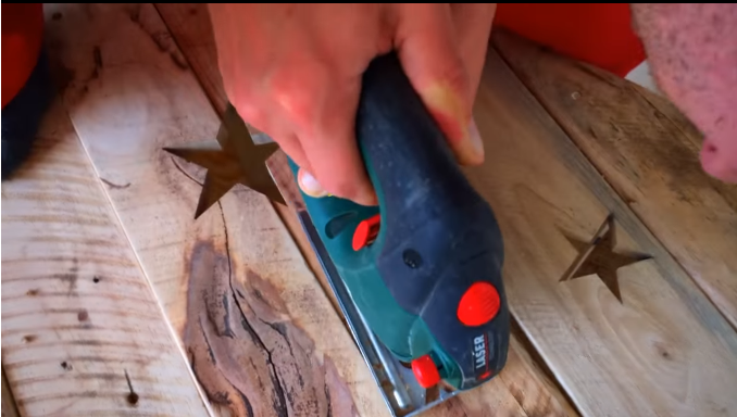 用木板連接起來(lái)后,他在上面花了許多小星星,然后切割掉,記住先別扔,收集起來(lái)等等還要用。做到上一步這個(gè)月亮船就算做好了,接著就是買來(lái)壁紙把房間裝飾得更加有童話氣息。