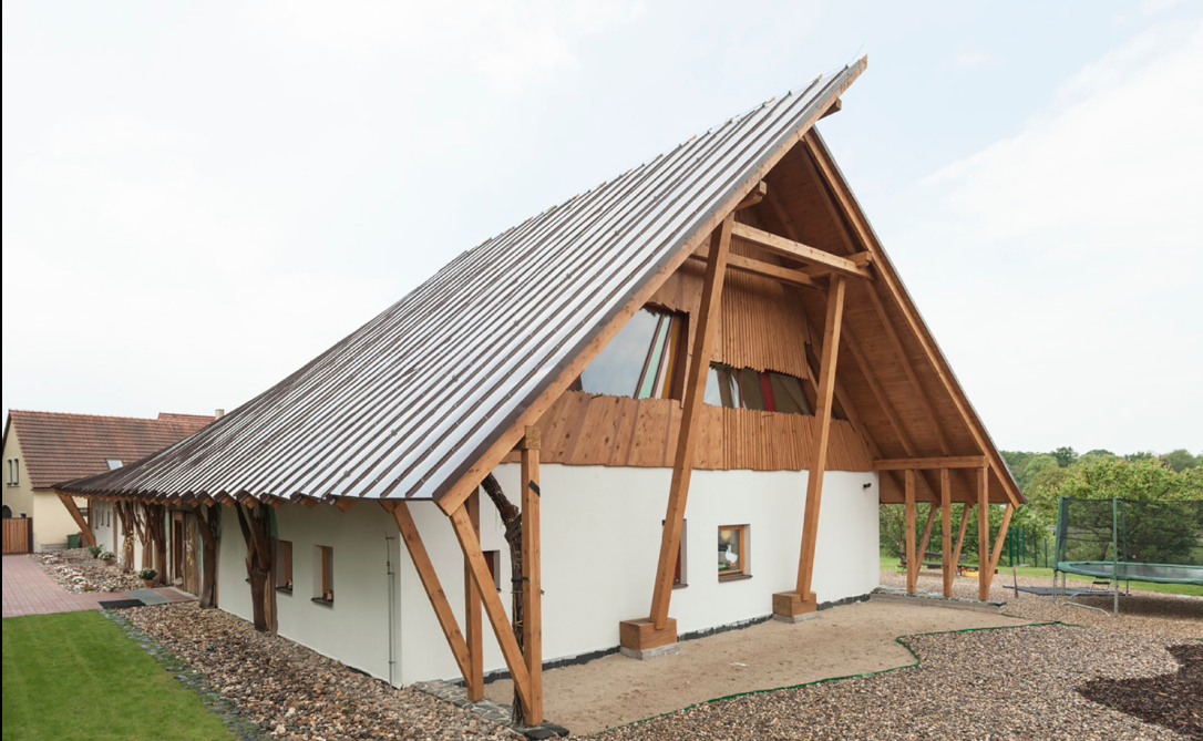 幼兒園被一個充滿了水果樹的花園所包圍,它是一層的方形建筑,屋頂是與眾不同的建筑和識別元素。北側有古典的坡頂,傾斜35度;南側緩慢朝一面墻下斜。