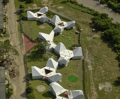 Timayui幼兒園由六個(gè)像花一樣的單體構(gòu)成,它們散落在場(chǎng)地中,同時(shí)將室外空間融合到幼兒園的平面中。每座建筑的內(nèi)部還設(shè)計(jì)了天窗,自然光線(xiàn)從墻面傾瀉而下,為孩子們提供了明亮的室內(nèi)環(huán)境。 該幼兒園不僅提供給孩子健康、積極的環(huán)境,而且致力于改善周?chē)毟F的社區(qū)環(huán)境。