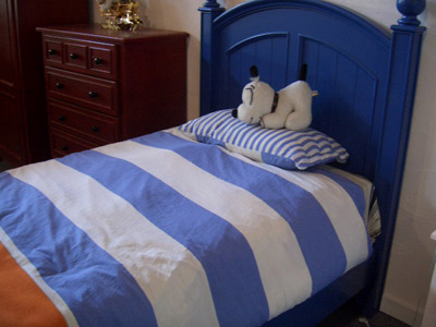 首先是家具,因為小孩子的保護意識不是很強,所以家具一定不要選擇哪種帶有棱角的,小孩子磕磕碰碰的容易受傷,電源什么的兒童房里面越少越好。小孩子喜歡在地上爬來爬去的,所以地上不要放置一些雜物。